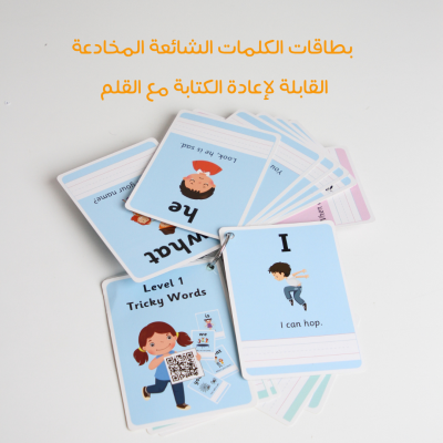 ٤١ بطاقة ١٠ * ١٤ سم، عالية الجودة وسميكة، تدرب الطفل على اتقان أكثر الكلمات شيوعا في اللغة الإنجليزية، وذلك من خلال تدريبهم على نطق هذه الكلملت من خلال خاصية الباركود المرتبط بقناتنا في اليوتيوب، والذي يوفر نطق بريطاني مثالي لكل كلمة، وكذلك من خلال التدريب على كتابة هذه الكلمات، حيث يتوفر قلم في علبة البطاقات ، كما أن البطاقات قابلة للمسح للتدريب وإعادة الكتابة، وتعتبر هذه البطاقات مثالية لتطوير مهارة الإسترسال في القراءة، حيث أن إتقان هذه الكلمات وقراءتها بصريا وبسرعة يسهل على الطفل مهمة قراءة أكثر الكلمات تكرارا في النصوص.